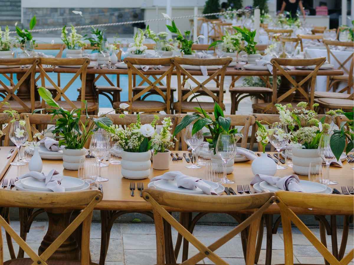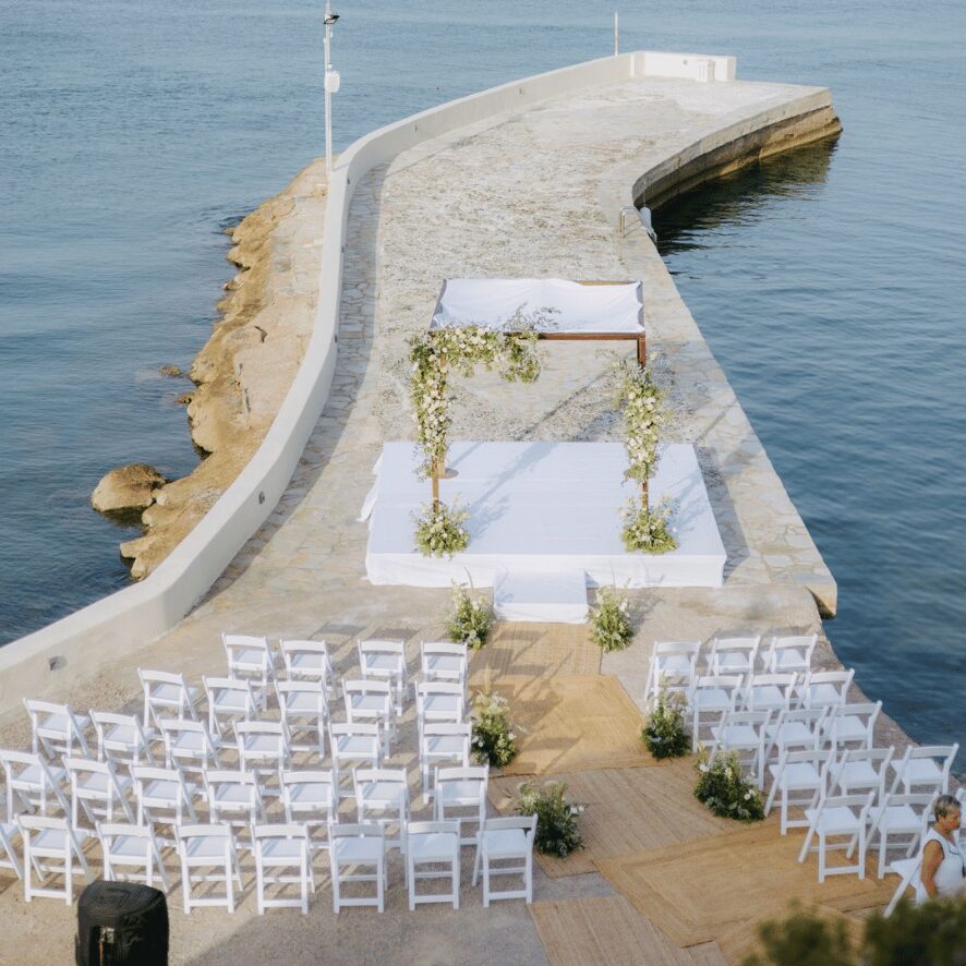 The resort is also one of Greece’s few kosher-friendly venues, which makes it a fantastic option for couples with specific dietary or cultural needs. Their team handles it all with warmth and professionalism, and the food is fresh, seasonal, and beautifully presented.