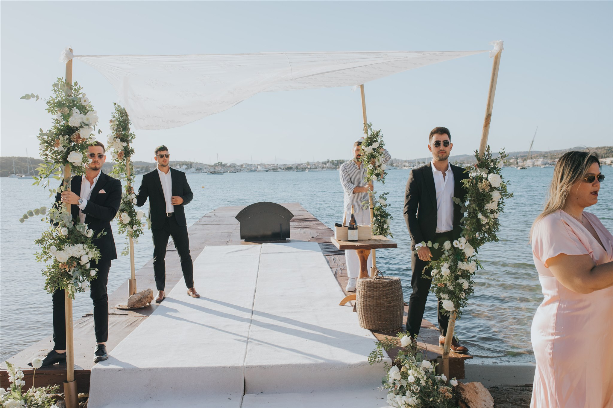 hotel, the pool party, the Taverna night, the breakfasts, the wedding reception, the Chuppah design and aisle,
